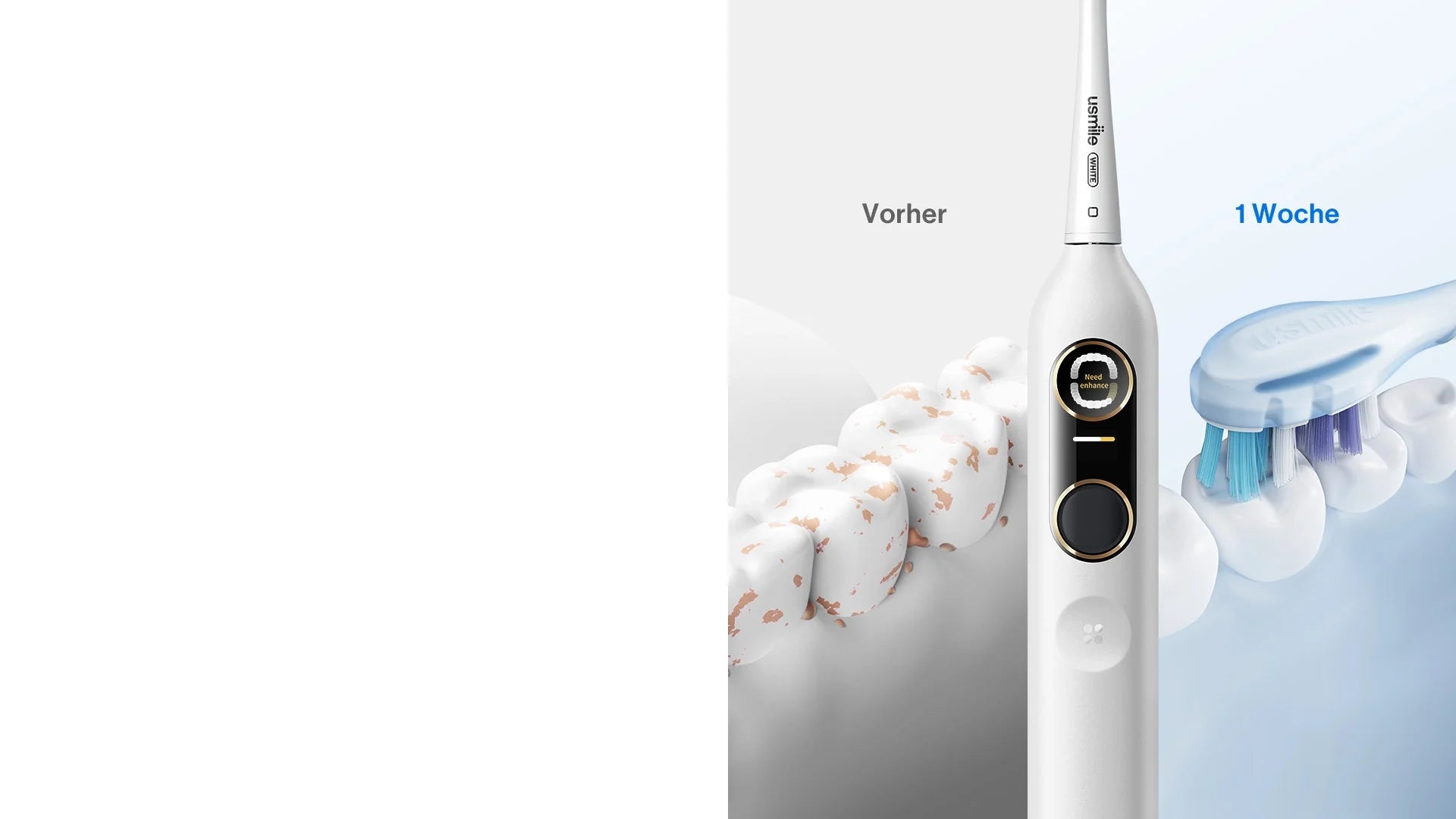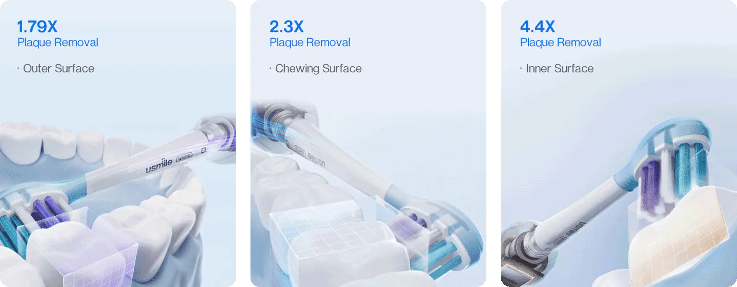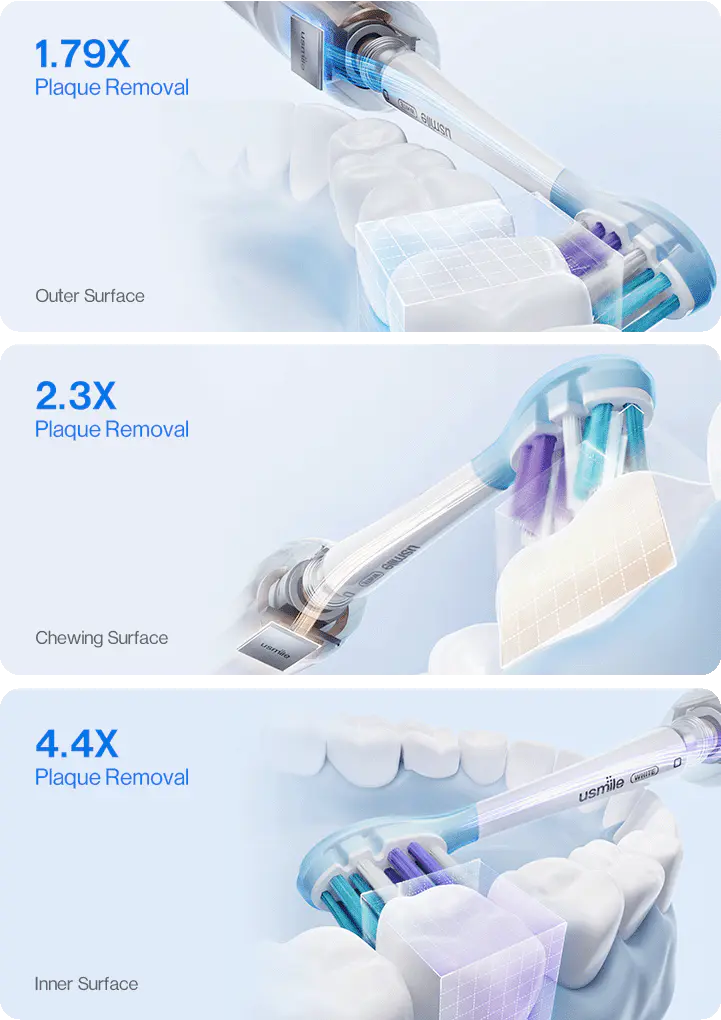 Dank der KI-gestützten Positionserkennung lokalisiert usmile Y10 PRO genau die Stellen, die Sie übersehen haben, und widmet jedem Bereich die nötige Aufmerksamkeit.