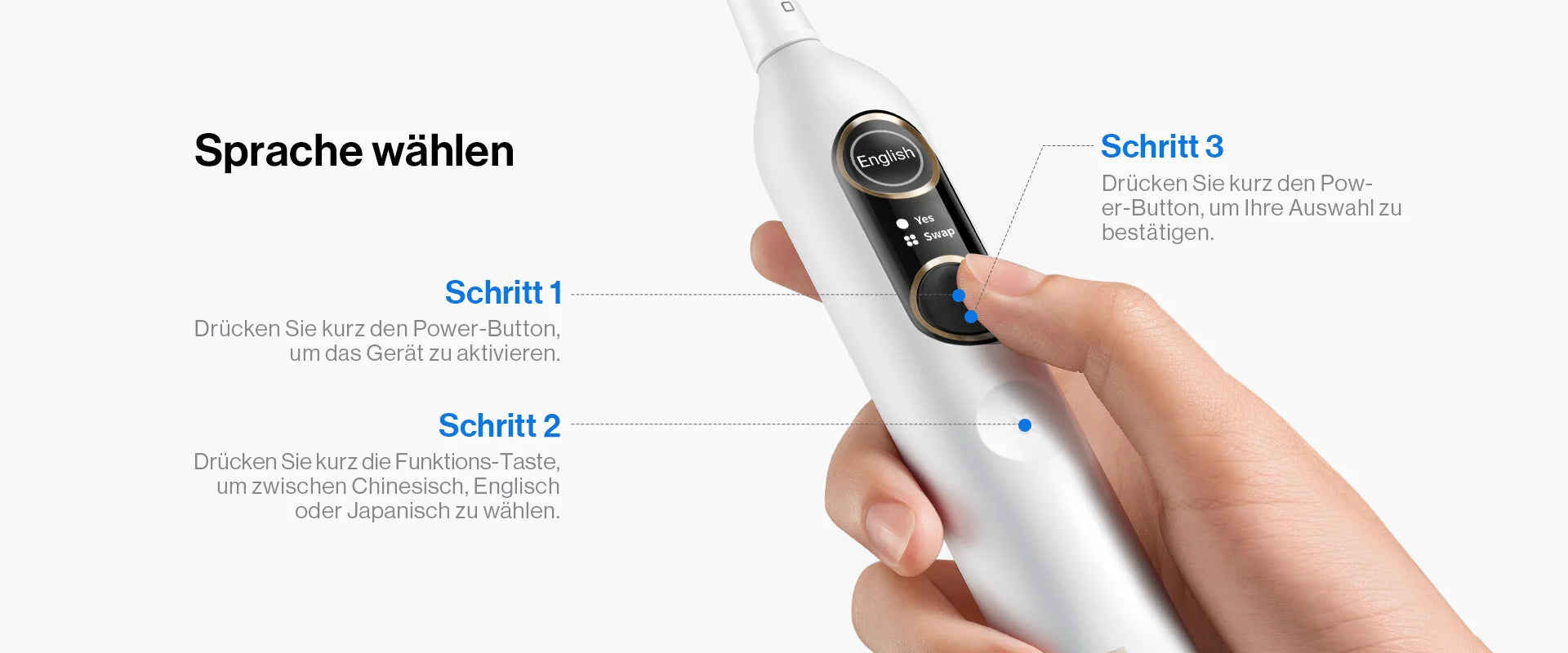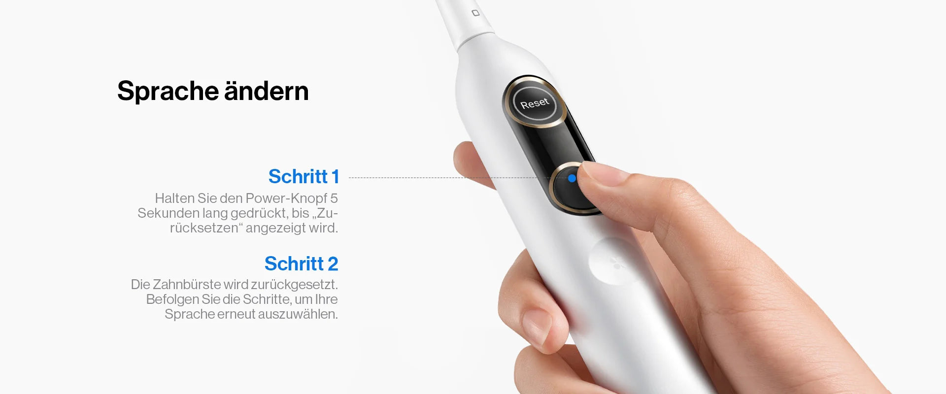- Weißmodus: Reinigt und poliert die Zähne mit stärkerem Druck, geeignet für die Tiefenreinigung.