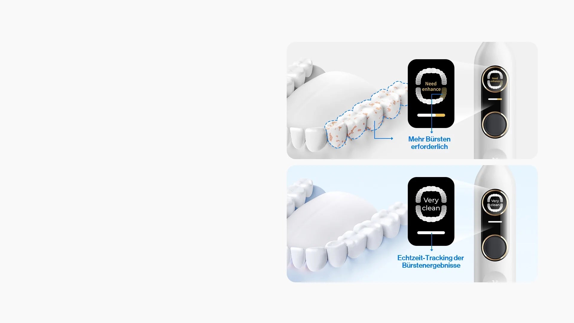 - Smart Screen: KI-gestützte Plaque-Erkennung für eine vollständige Reinigung