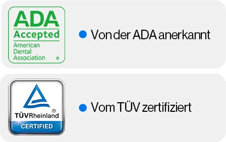 *Das ADA-Siegel wird einer Zahnbürste verliehen, wenn der Hersteller ihre Sicherheit und Wirksamkeit bei der Plaque-Entfernung und der Reduzierung von Zahnfleischentzündungen nachweist.
