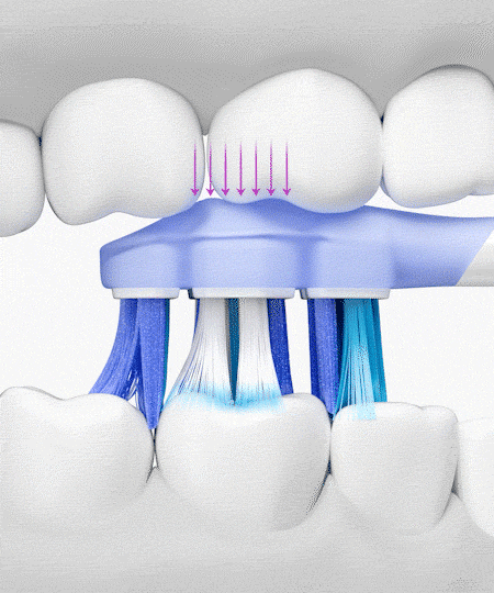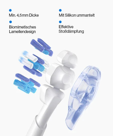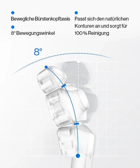 Präzise gesteuerte sanfte Oszillationen und ein flacher Winkel am Zahnfleischsaum gewährleisten eine gründliche Reinigung ohne Reizungen – zum Schutz empfindlicher Zahnfleischpartien.