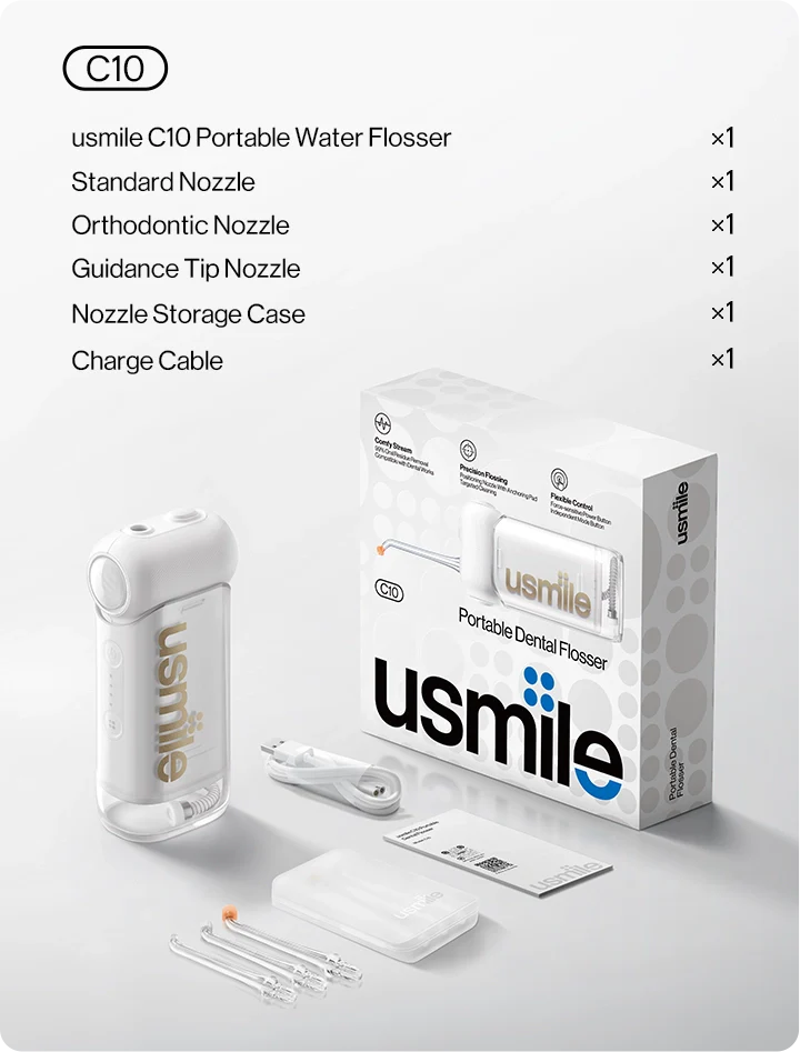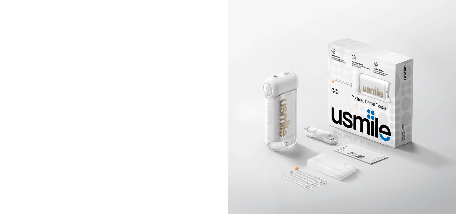 Es ist perfekt für unterwegs. Der usmile C10 ist kleiner als Ihr iPhone und lässt sich überallhin mitnehmen. Außerdem ist er besonders einfach zu bedienen – ideal für Anfänger oder Personen, denen herkömmliche Zahnseide schwerfällt.