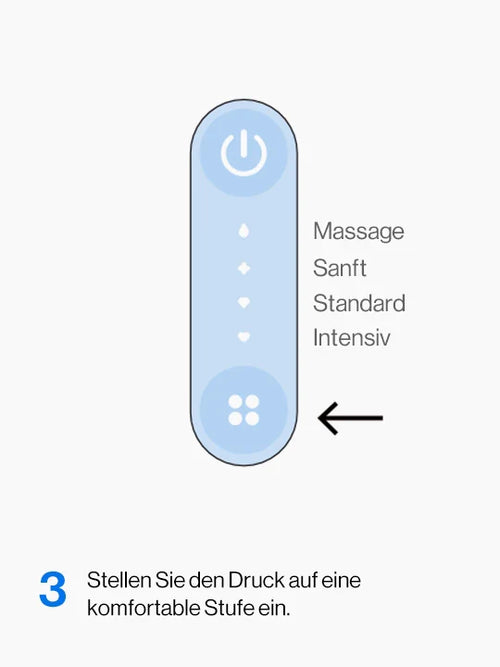4 Druckstufen, Massage / Sanft / Standard / Intensiv |