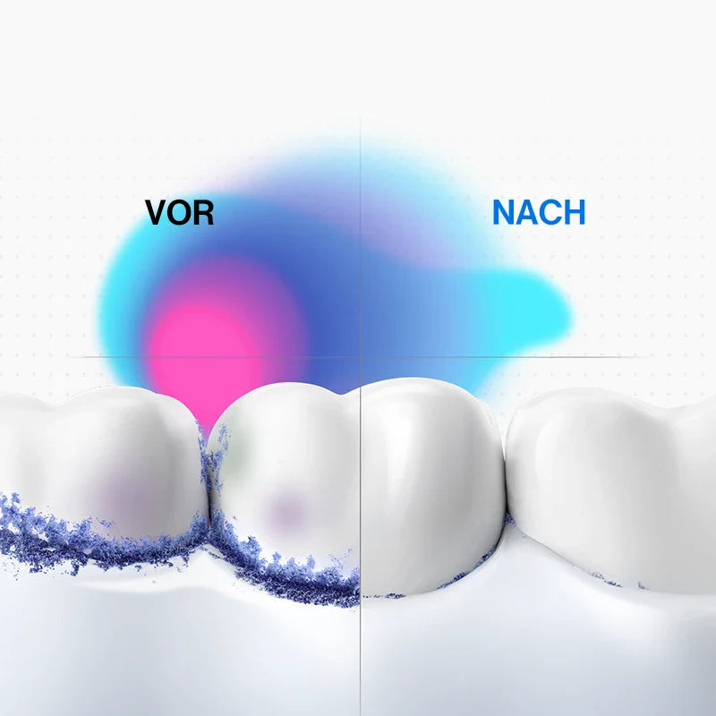 Entfernt 99,99 % des Zahnbelags im behandelten Bereich