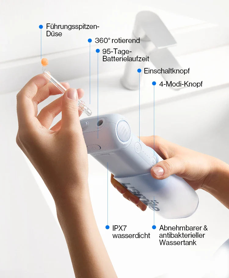 Der usmile Mundreiniger kann Entzündungen und Blutungen reduzieren, indem er Plaque und Bakterien entfernt – besonders vorteilhaft für Personen mit Zahnfleischerkrankungen.