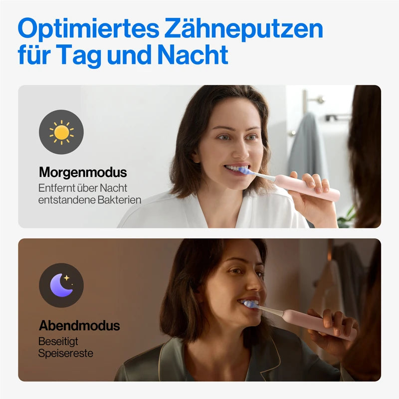 - Automatischer Wechsel zwischen AM- und PM-Einstellungen für optimale Pflege jederzeit