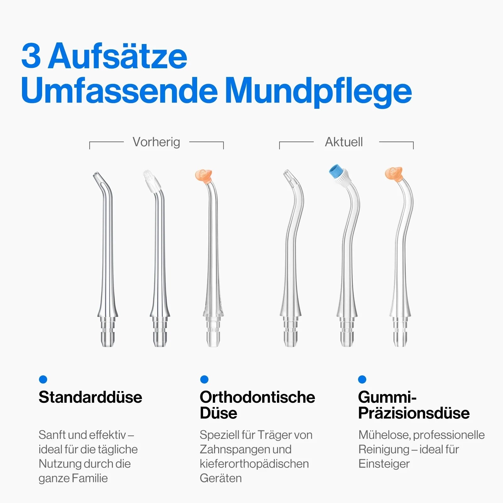 Der kraftvolle und präzise Wasserstrahl der C10 wurde speziell für die Entfernung von Plaque und Ablagerungen in schwer erreichbaren Bereichen entwickelt. Perfekt für Implantate, Zahnspangen und empfindliches Zahnfleisch.